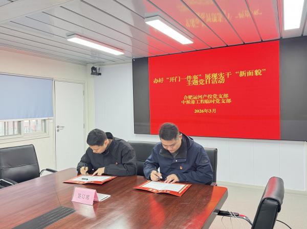 結(jié)合項目年度建設(shè)目標任務(wù),合肥運河產(chǎn)投黨支部和中派港工程臨時黨支部負責同志現(xiàn)場簽訂《攻堅承諾書》,帶領(lǐng)一線黨員建設(shè)者亮牌踐諾、錨定目標,營造“爭先進位、比學趕超”的濃厚氛圍,讓黨旗在項目一線高高飄揚。
